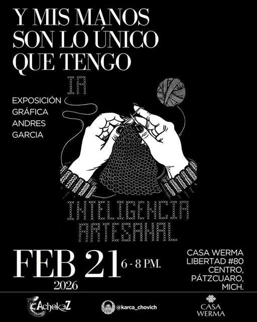 13 FEB. 2026.-Acompáñanos en la inauguración de la exposición gráfica “Y MIS MANOS SON LO ÚNICO QUE TENGO”, con grabados del artista Andrés García, y comparte una tarde rodeada de arte, creatividad y buena compañía.