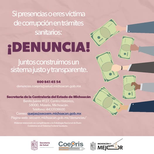 Si presencias o eres víctima de algún acto de corrupción durante la realización de un trámite sanitario, ¡DENUNCIA!