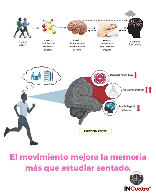 Caminar o moverse durante el aprendizaje mejora la consolidación de la memoria y la atención, demostrando que el cerebro aprende mejor cuando el cuerpo participa activamente.