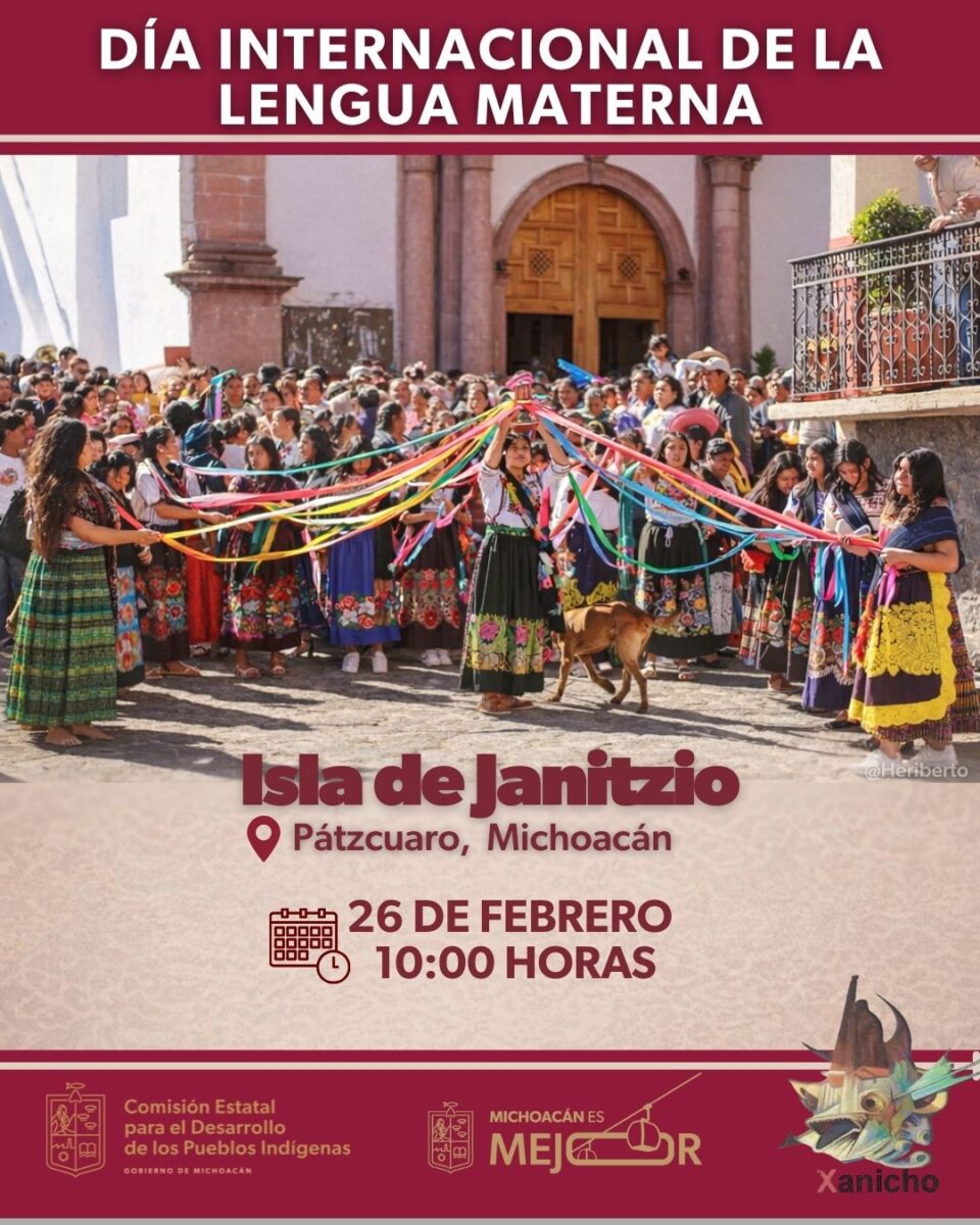 24 de febrero de 2026.– La Comisión Estatal para el Desarrollo de los Pueblos Indígenas (CEDPI), en coordinación con el Concejo Comunal de la Isla Janitzio, invita a la ciudadanía a participar en el evento conmemorativo del Día Internacional de la Lengua Materna, que se llevará a cabo el próximo 26 de febrero a las 10:00 horas en la Isla de Janitzio.