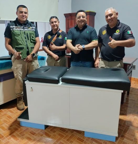 28 DIC. 2025.-La Dirección de Protección Civil a cargo del TUM/BOM, Gregorio Moreno Méndez, extiende su más sincero agradecimiento al Dr. Gamaliel Moreno Castro por su generosa donación de una mesa de exploración médica.