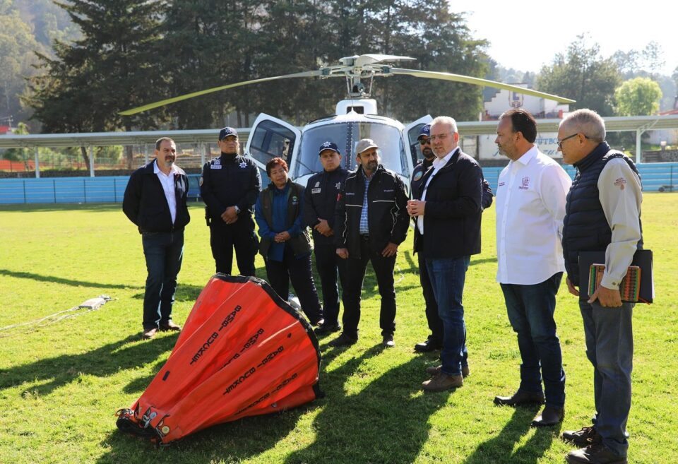 “La importancia del uso de helicópteros es para fortalecer el respaldo a nuestros brigadistas, para que tengan seguridad en el terreno, porque el respaldo aéreo les da esa confianza de que no están solos para combatir el incendio forestal”, resaltó el mandatario estatal, tras realizar la entrega de equipamiento.