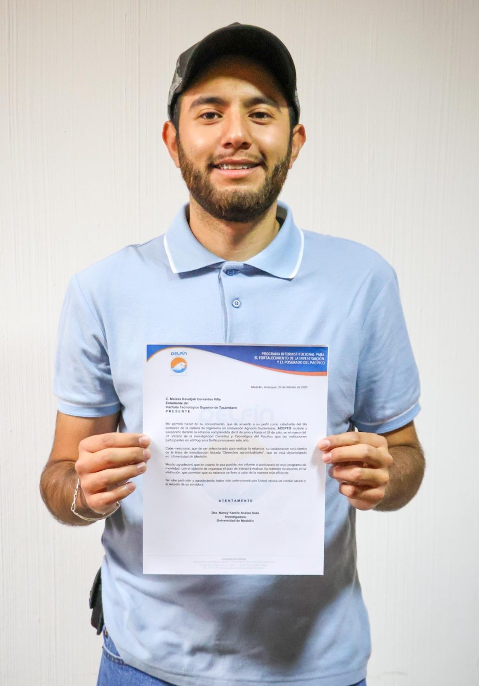 17 MARZO 2026.-El estudiante Moisés Havotjair Cervantes Villa, de sexto semestre de la carrera de Ingeniería en Innovación Agrícola Sustentable del Tecnológico Nacional de México campus Tacámbaro, fue seleccionado para participar en el 31 Verano de la Investigación Científica y Tecnológica del Pacífico, promovido por las instituciones que integran el Programa Delfín.