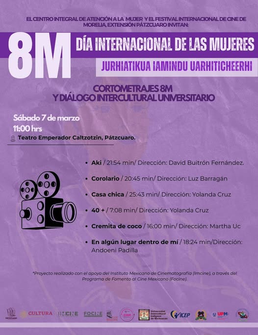 5 MARZO 2026.-Te invitamos a disfrutar de “8M Día Internacional de las Mujeres: Jurhiatikua Iamindu Uarhiticheerh”, exhibición de cortometrajes 8M y diálogo intercultural universitario.