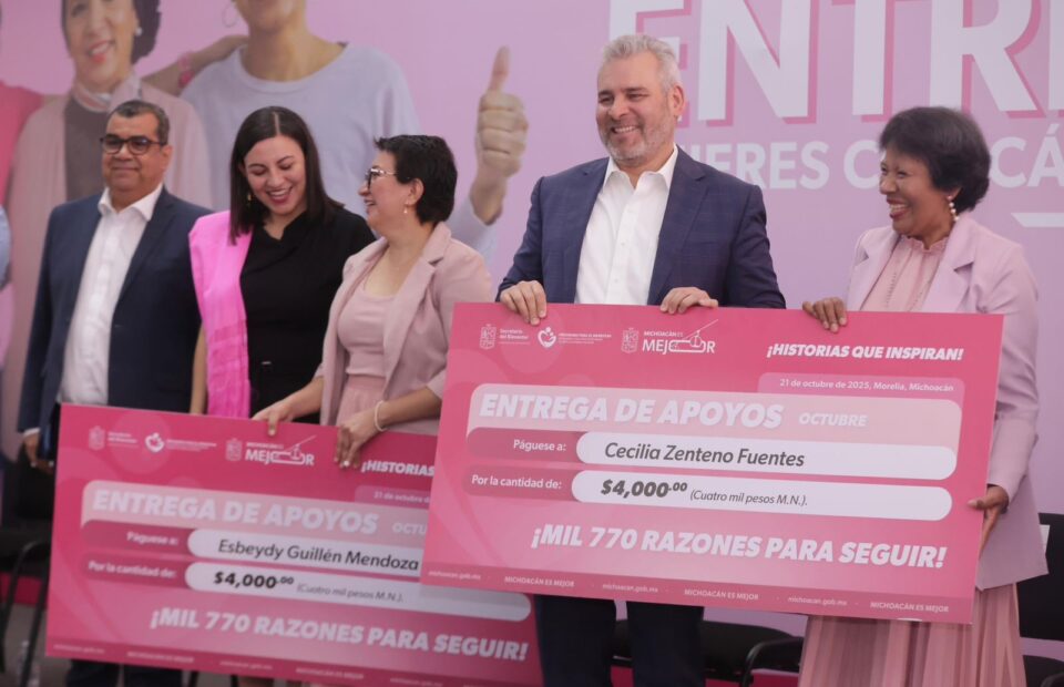 21 de octubre de 2025.-* En Michoacán las mujeres no están solas, tienen apoyo para su tratamiento y se cuenta con tecnología de punta para tratar y detectar el cáncer, señaló el gobernador Alfredo Ramírez Bedolla al entregar mil 770 apoyos del Programa para el Bienestar de mujeres con cáncer de mama y cervicouterino invasor.