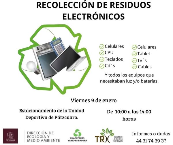 GOBIERNO DE PATZCUARO INICIA CON RECOLECCION DE RESIDUOS ELECTRONICOS 8 ENERO 2026.-Te invitamos a ser responsable y amigable con el medio ambiente. Lleva tus residuos electrónicos a la campaña que organiza el H. Ayuntamiento de Pátzcuaro. Juntos podemos lograr el Pátzcuaro que todos queremos. #Pátzcuaro #CulturayOportinidades REDACCION