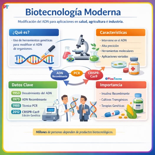 2026.-La biotecnología moderna está revolucionando la medicina, la agricultura y la industria gracias a herramientas como el ADN recombinante, la PCR y la edición genética con CRISPR-Cas9.