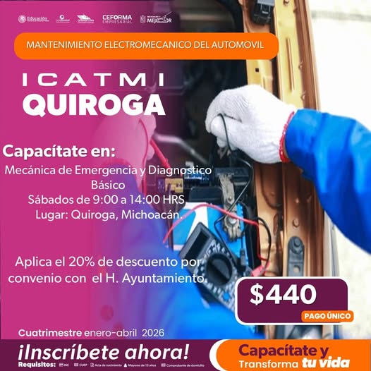 ICATMI QUIROGA OFRECE CURSO DE MECANICA DE EMERGENCIA Y DIAGNOSTICO BASICO