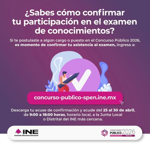 Si ya iniciaste tu postulación para el #ConcursoPúblico2026 del Servicio Profesional Electoral Nacional (#SPEN), ¡es momento de asegurar tu lugar en el examen de conocimientos!
