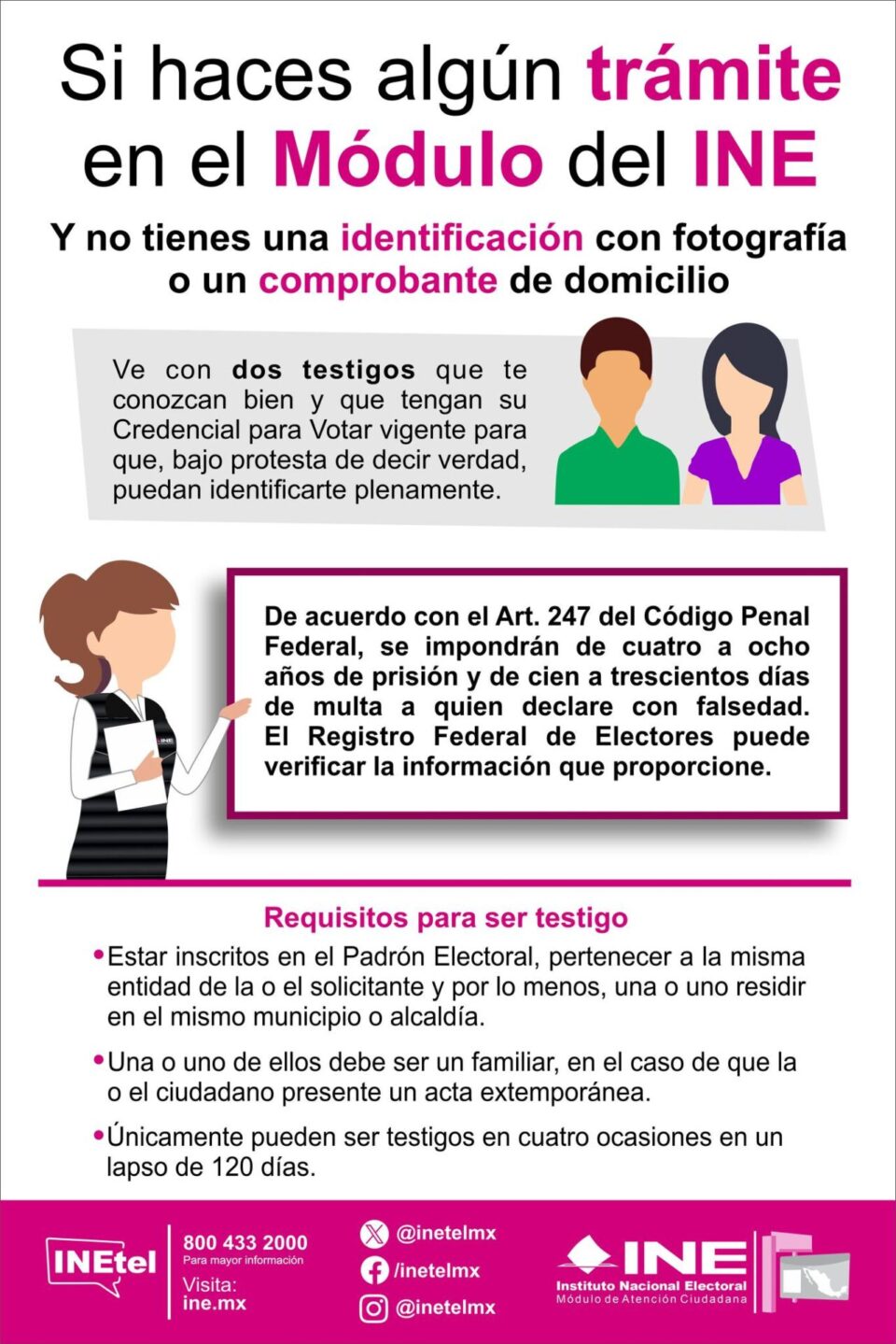 INE INVITA A LA CIUDADANIA PARA CONTAR CON SU CREDENCIAL VIGENTE 17 OCT. 2025.-#CredencialParaVotar I Si no tienes una identificación con fotografía o un comprobante de domicilio, acude al Módulo de Atención Ciudadana con dos testigos que te conozcan bien y que tengan su credencial para votar vigente. Agenda tu cita en: https://app-inter.ife.org.mx/…/citas_initCapturaCitas.siac llama al: 800 433 2000 Vista: www.ine.mx REDACCION