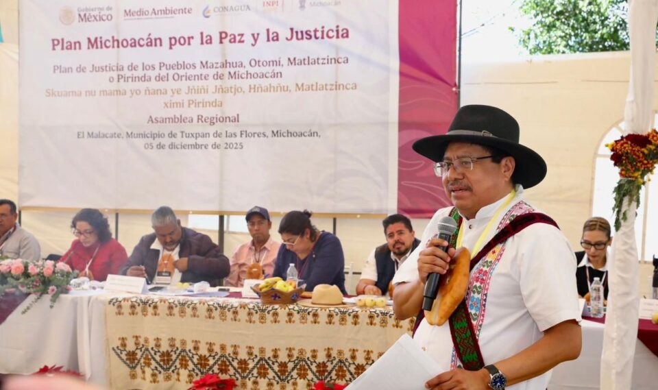 5 de diciembre de 2025.-* El director general del Instituto Nacional de los Pueblos Indígenas (INPI), Adelfo Regino Montes, visitó el oriente de Michoacán para encabezar la primera asamblea del Plan de Justicia de los Pueblos Mazahua, Otomí, Matlatzinca o Pirinda, para construir acuerdos de manera conjunta que beneficien a la población de las comunidades originarias.