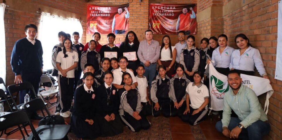 8 NOV. 2025.-En la Casa Enlace Tacámbaro hice entrega de reconocimientos a estudiantes del Cecytem de la localidad del Cahulote de Santa Ana, quienes impartieron una Conferencia sobre el Ciberacoso y Ciberbullying.