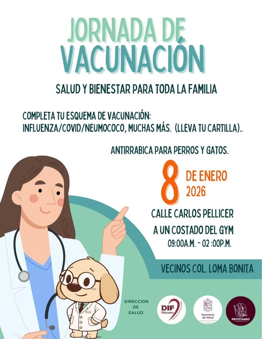 El Dif Municipal en coordinación con la Dirección de Salud Municipal, invita a toda la comunidad a participar en la Campaña de Vacunación que se llevará a cabo en coordinación con la Jurisdicción Sanitaria.
