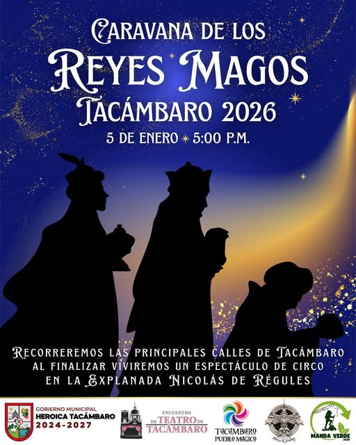 4 ENERO 2026.-Este 5 de enero a las 5:00 p.m., vive una tarde llena de ilusión, tradición y alegría con la Caravana de los Reyes Magos Tacámbaro 2026.