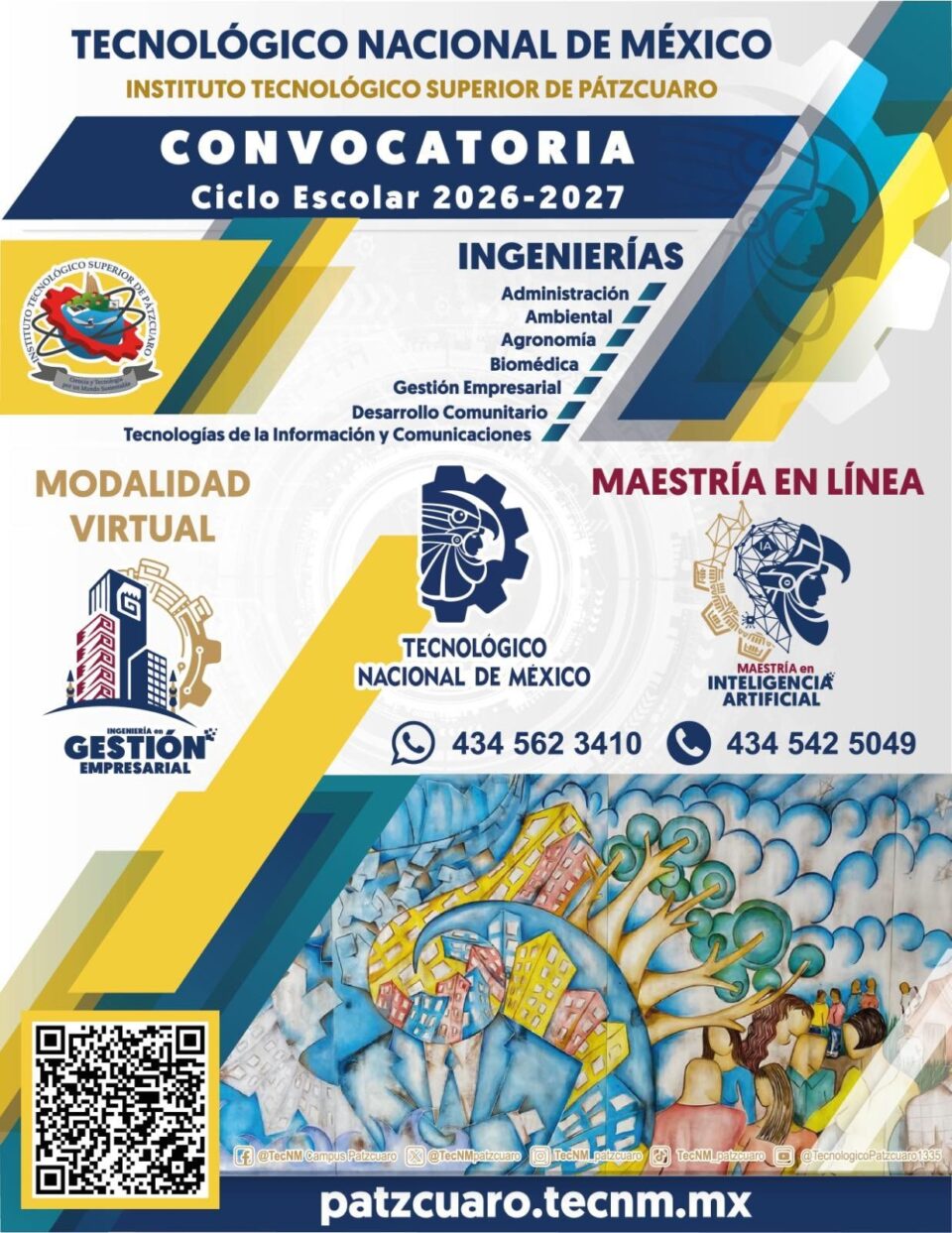 24 de enero de 2026.-El Tecnológico Nacional de México (TecNM), a través del Instituto Tecnológico Superior de Pátzcuaro (ITSPátzcuaro), informa a la comunidad estudiantil y al público en general la publicación de la Convocatoria de Nuevo Ingreso correspondiente al ciclo escolar 2026–2027, dirigida a personas próximas a egresar de nivel medio superior, así como a quienes deseen incorporarse a la educación superior tecnológica.