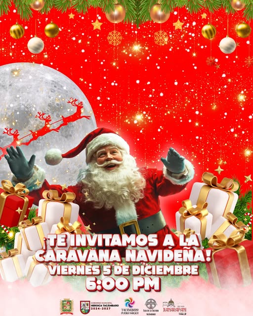 1 DIC. 2025.-La Dirección de Turismo y Cultura del Gobierno Municipal de Tacámbaro te invita a disfrutar de la espectacular Caravana Navideña, este viernes 5 de diciembre a las 6:00 p.m.