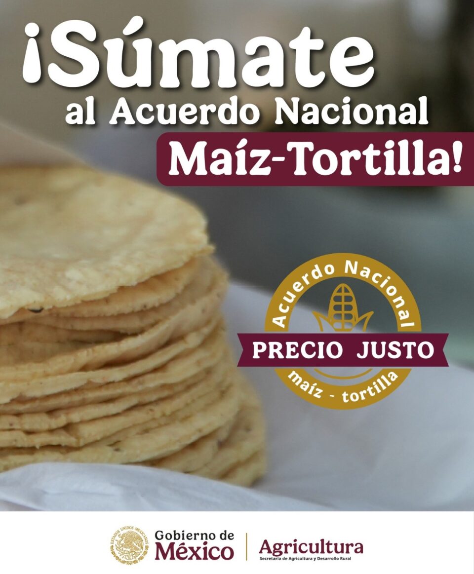 21 de octubre de 2025.-La Secretaría de Agricultura y Desarrollo Rural invita a las tortillerías del país a adherirse al programa “Súmate al Acuerdo Nacional Maíz-Tortilla”, una iniciativa que busca facilitar el acceso a maíz y harina a precios preferenciales, así como otorgar apoyo financiero y reconocimiento oficial a los establecimientos adheridos.