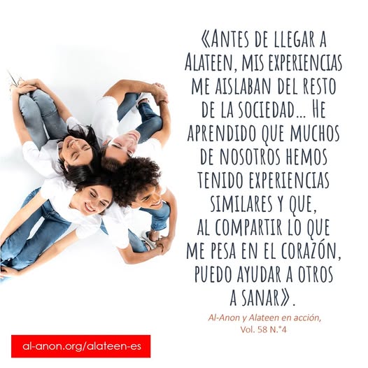 2025.-«Antes de llegar a Alateen, mis experiencias me aislaban del resto de la sociedad. Parecía que nadie más había pasado por lo mismo. Gracias a Alateen, he aprendido que las experiencias pueden crear vínculos. En Alateen, he encontrado un compañerismo y una comprensión que antes no creía posibles. Cuando empecé a compartir mis relatos en las reuniones, a menudo me sentía culpable después. Pensaba que estaba “llamando la atención demasiado” y que nadie lo entendería. A lo largo del programa, he aprendido que muchos de nosotros hemos tenido experiencias similares y que, al compartir lo que me pesa en el corazón, puedo ayudar a otros a sanar».