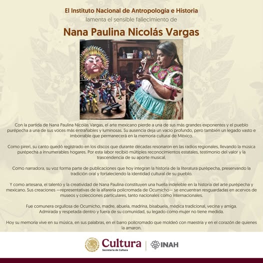 Honramos su legado y enviamos nuestro cariño a su familia y a Ocumicho.