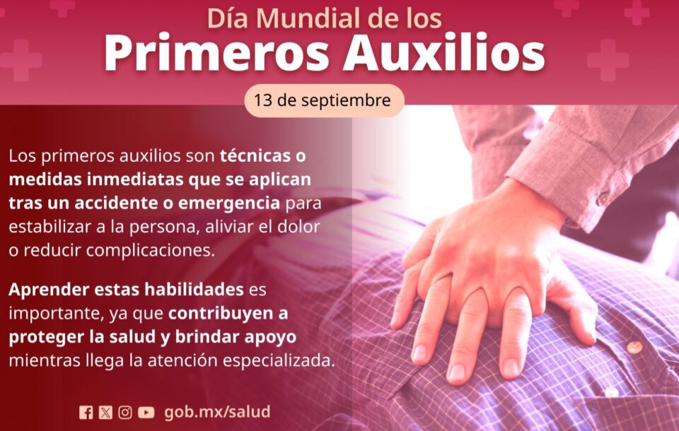 13 de septiembre de 2025.-Los primeros auxilios son las medidas inmediatas que se le brindan a una persona que ha sufrido algún accidente o una enfermedad repentina, a fin de salvar su vida y evitar complicaciones físicas y psicológicas.