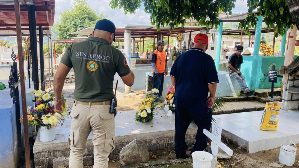El Comandante Operativo Jaime Mendoza Rodríguez realizó recorridos por los distintos panteones del municipio, acompañado de personal operativo, para verificar las condiciones y brindar recomendaciones a los encargados de los cementerios.