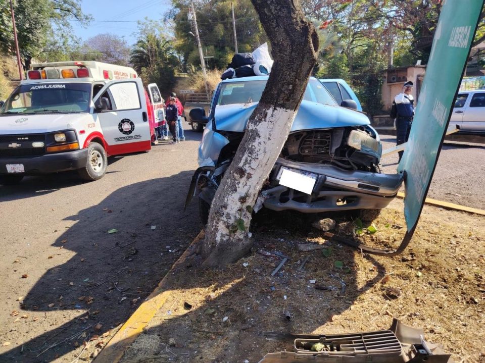 10 abril 2026.-Esta mañana, nuestras unidades y personal paramédico atendieron un choque en el crucero de salida a Pedernales, ubicado frente al balneario Sapirhaticheri, donde una camioneta aparentemente se quedó sin frenos y se impactó contra un árbol.