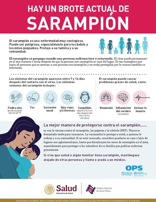 RECOMIENDAN VACUNA PARA PREVENIR EL BROTE DE SARAMPION NOV. 2025.-¡Hay un brote actual de Sarampión! El Sarampión puede ser peligroso, especialmente para los bebés y las infancias. Te compartimos cuáles son los síntomas y qué problemas de salud puede causar ¡La mejor forma de protegerse es con la vacuna! REDACCION