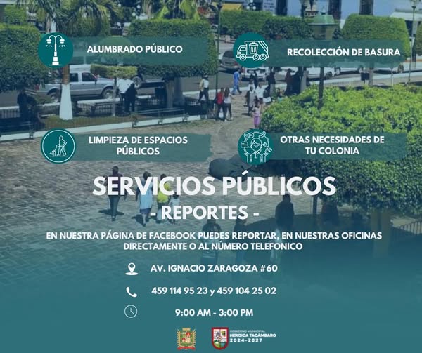 La Oficina de Servicios Públicos está comprometida con atender las necesidades de nuestra comunidad. Por eso, te invitamos a que realices tus reportes de:
