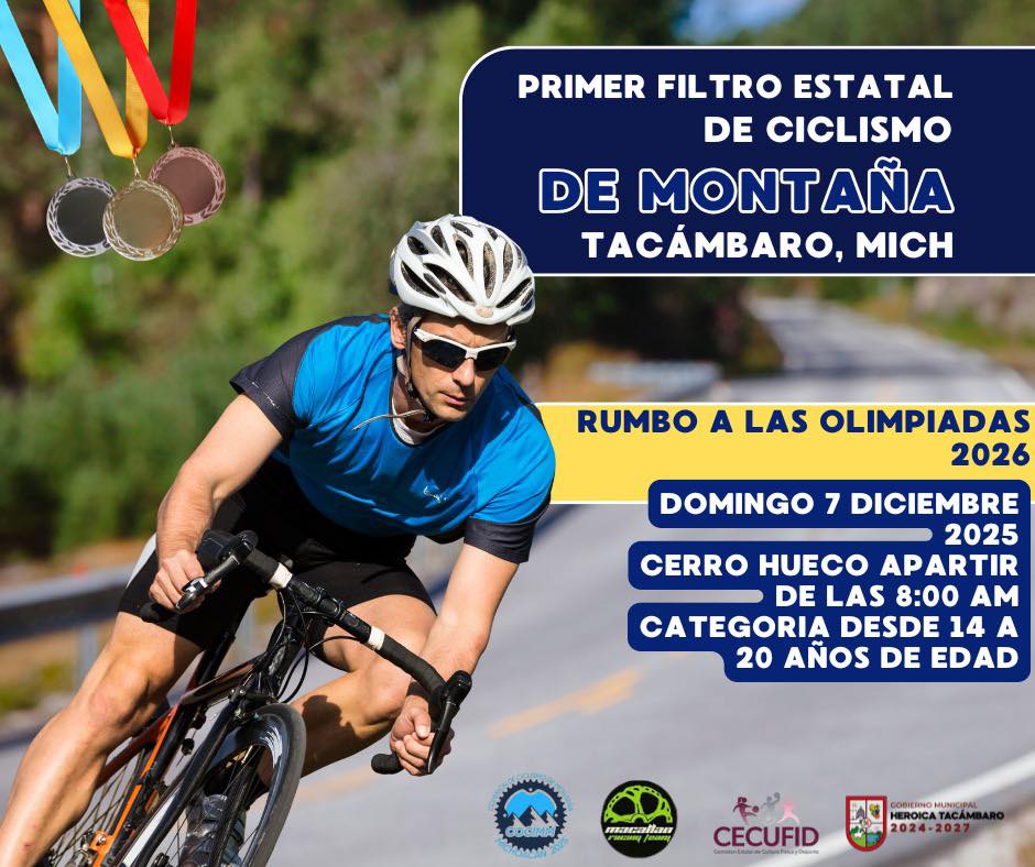 El equipo Magallan Racing Team, en coordinación con la Comisión de Selección de Michoacán y con el apoyo del H. Ayuntamiento de Tacámbaro, encabezado por el edil Alejandro Fuerte García, convocan al Primer Filtro Estatal de Ciclismo de Montaña para integrar la Selección Michoacana de Ciclismo, con miras a la Olimpiada Nacional 2026.