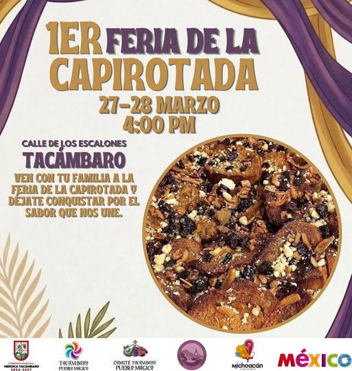 2026.-Este 27 y 28 de marzo vive la 1ª Feria de la Capirotada en la emblemática Calle de los Escalones, donde podrás disfrutar de este delicioso postre tradicional preparado por manos tacambarenses.
