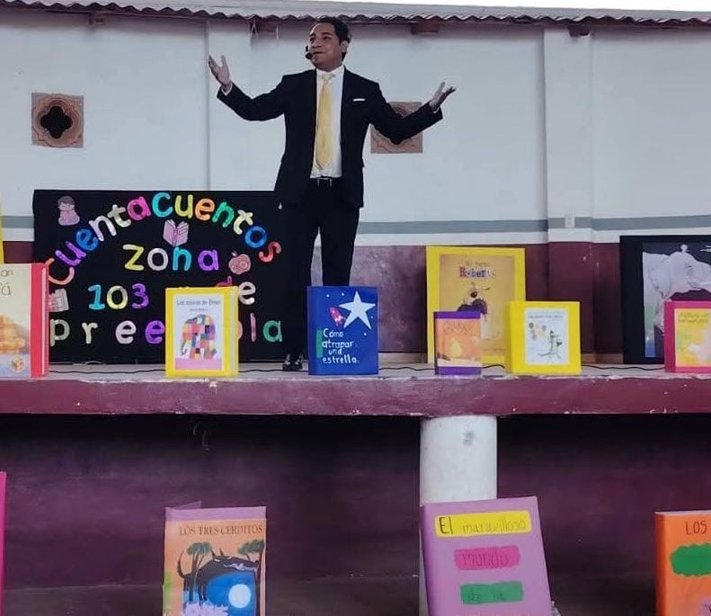 18 enero de 2026.- En el marco de la presentación de cuenta cuentos de la zona escolar 103 que encabeza la Dra. Guillermina Santana Vega, fue invitado el Dr. Tayde González Arias para narrar “la peor señora del mundo”, de los autores Francisco Hinojosa y Rafael Barajas “el fisgón”.