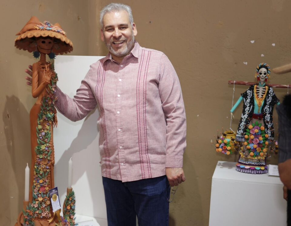 El gobernador explicó que las catrinas son elaboradas por manos de personas artesanas originarias de Capula, una tenencia de Morelia donde existen talleres tradicionales que preservan las técnicas y conocimientos, los cuales pasan de generación en generación.